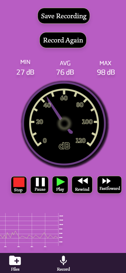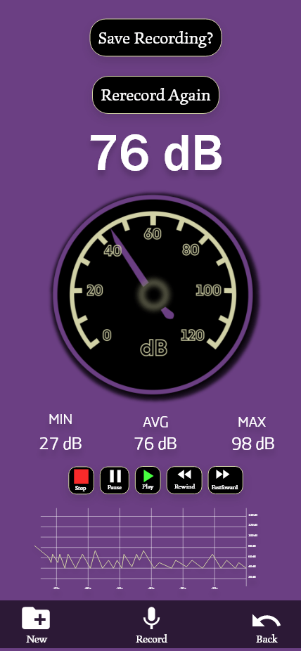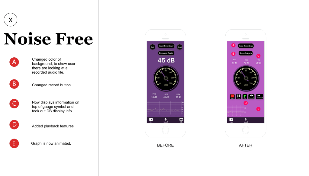 from this research I was able to make the recording visuals a different color to let the user know that they have begin recording. I then created larger buttons for the playback options, so that the user could easily recognize the features. In the end I believe I was able to solve most of the issues that the participants commented on and kept the functionality that the users were able to understand.