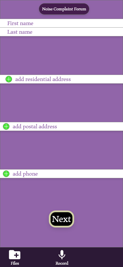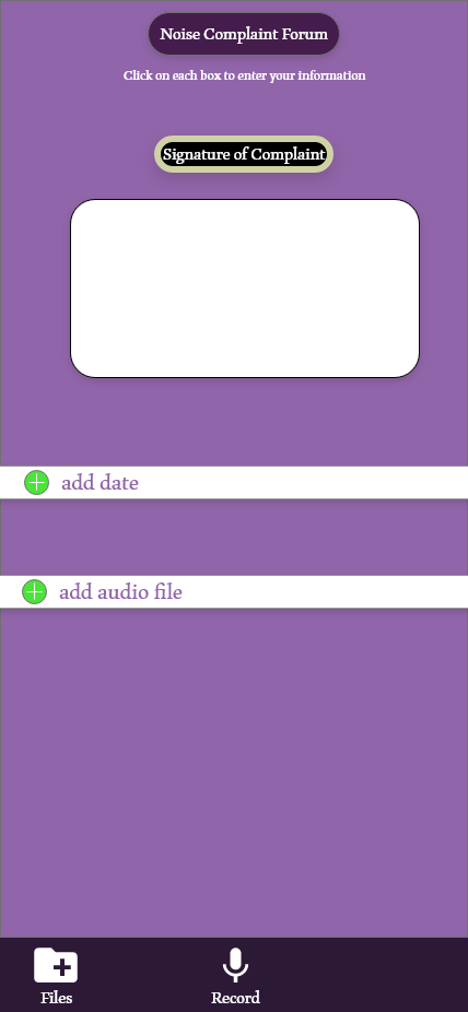 To help solve this issue I am developing an application that can determine the sound levels of the users environment and organizes the documents needed to create these ordinances in a quick and easy way. The user will be able to use the speaker on their smart phone to determine the sound decibels of the noise and the software will determine the levels frequency. There are three levels to the noise detection. The first level is color coded as green, letting the user know that the noise level does not require any legal actions. The user can still process the noise violation forums but the legal actions depend on the users state laws. The second level is color coded as yellow, letting the user know if the sound levels starts to increase legal actions will be needed. The third level is color coded as red, letting the user know that legal actions will be needed. The application will then guide the user through the process of creating the legal forums needed for these ordinances. After the user fills out the ordinances it will then be processed by law enforcement, so that they can quickly take care of the noise violation. Communities in America deserve environments they feel comfortable in. My goal for this is to create software that allows them to quickly document the noise levels around them and to guide them through the legal documentation that needs to be processed.